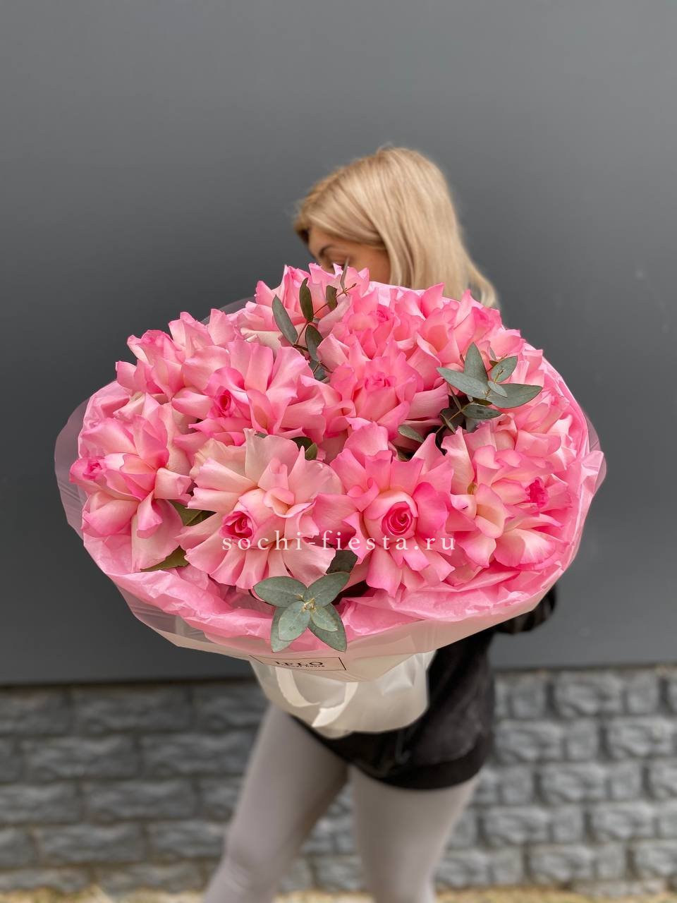 французские розовые розы в оформлении с эвкалиптом  На фото 11.