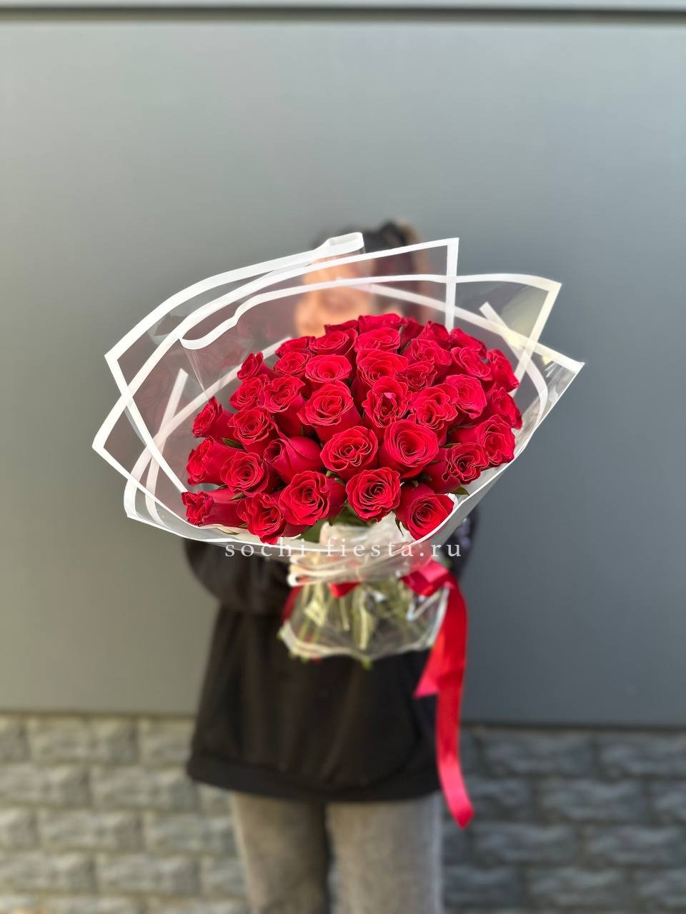 37 роз, лента, дизайнерская пленка.