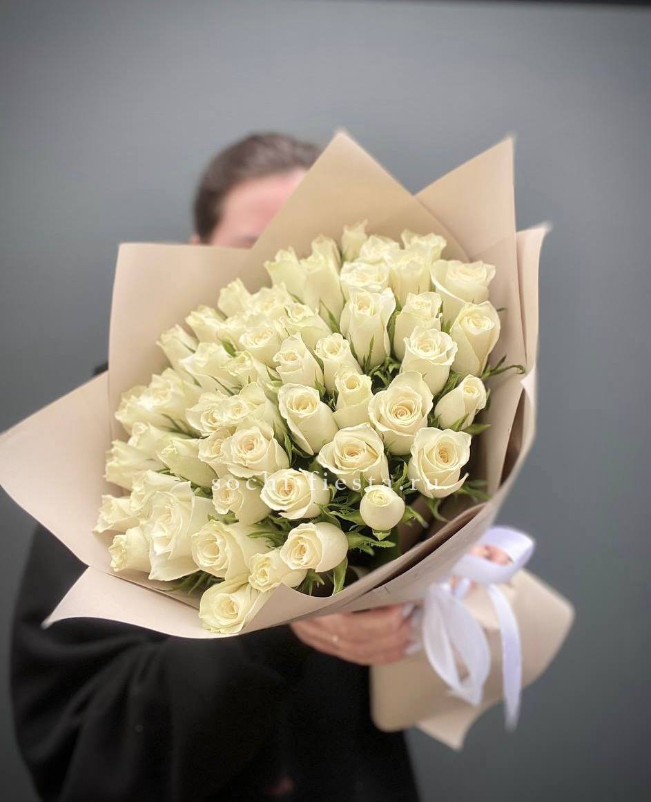 Кенийские розы отличаются упругими стеблями и долгим сохранением свежести после среза. Белые бутоны собраны в аккуратную форму, которая не требует сложного ухода и легко помещается в стандартную вазу.