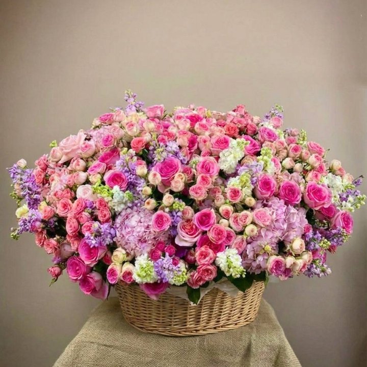 - Корзина-гигант — плетёная корзина из сезонных цветов для торжественных вручений и открытий.