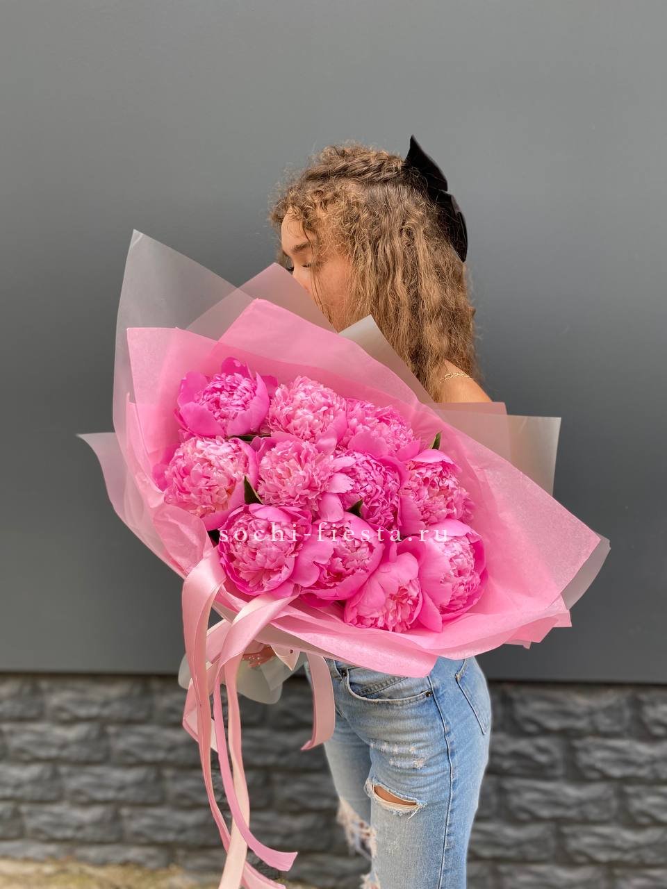 Пионы в воздушной упаковке из тишью создают впечатление лёгкости и движения. Полупрозрачная плёнка мягко обволакивает бутоны, сохраняя их естественную красоту и свежесть.