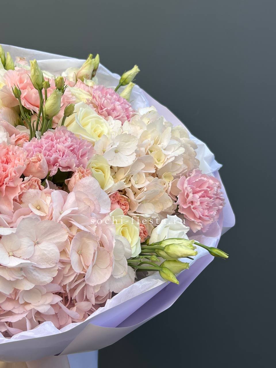 гортензии, розы, эустомы, диантусы. оформление.