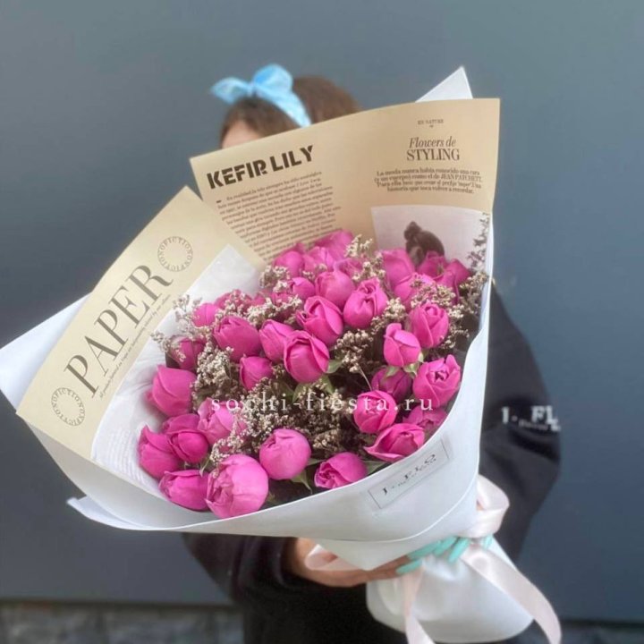 Ассортимент флориста в Химкие компактный и честный. Розы — основа: Freedom или что есть в поставке. Хризантема и гербера для доступного сегмента. Тюльпаны весной. Пионы — если есть в поставке. Флорист в Химкие не делает вид, что у него есть всё — он предлагает лучшее из того, что есть. Это честность, которую клиент ценит.