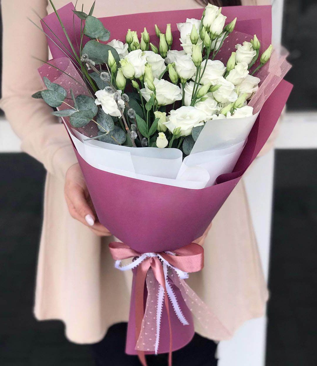 Эустомы с эвкалиптом