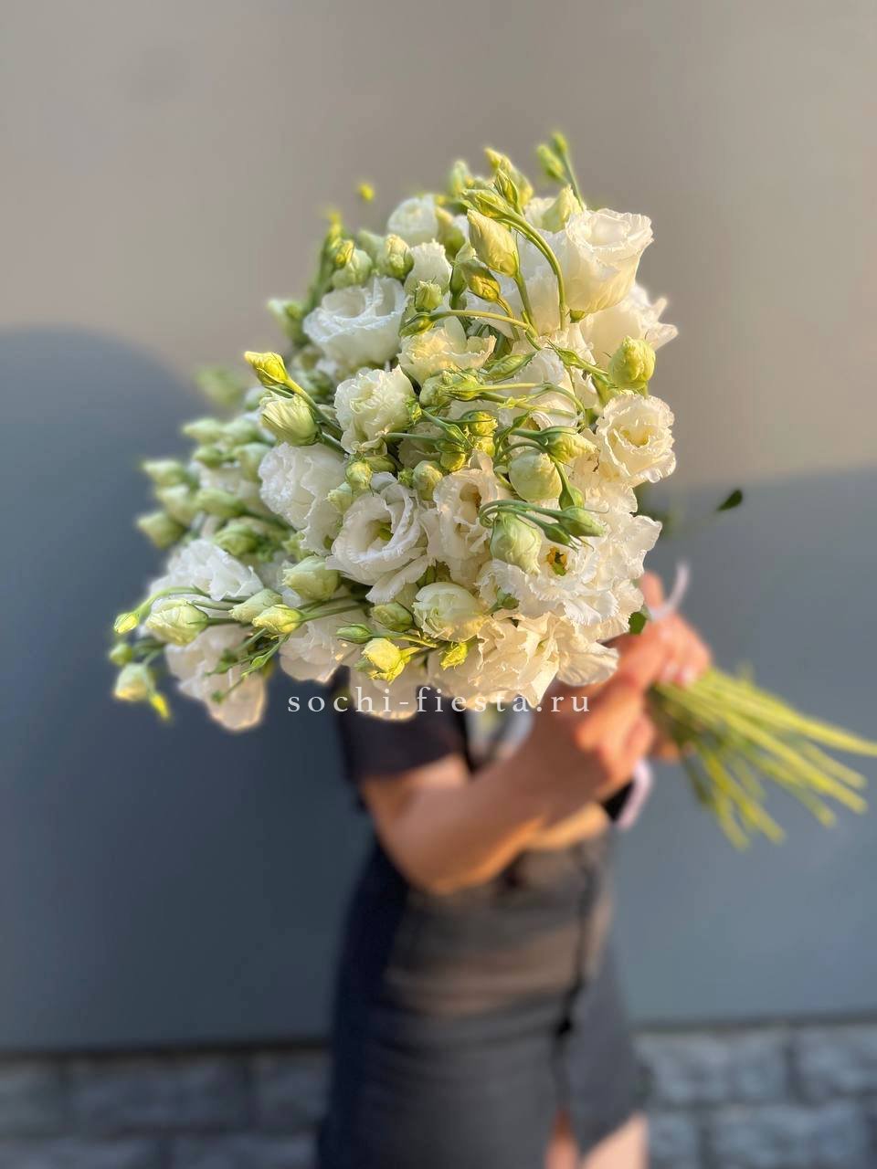 Охапка эустомы в свободной упаковке – чистая форма без усложнений. Веточки располагаются свободно, создавая лёгкий ритм и воздушное присутствие. Монобукет для современного интерьера и минималистичной эстетики.
