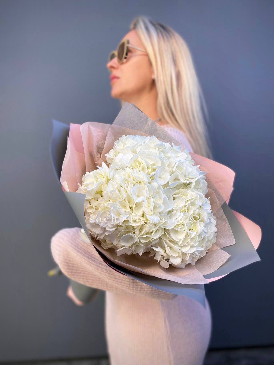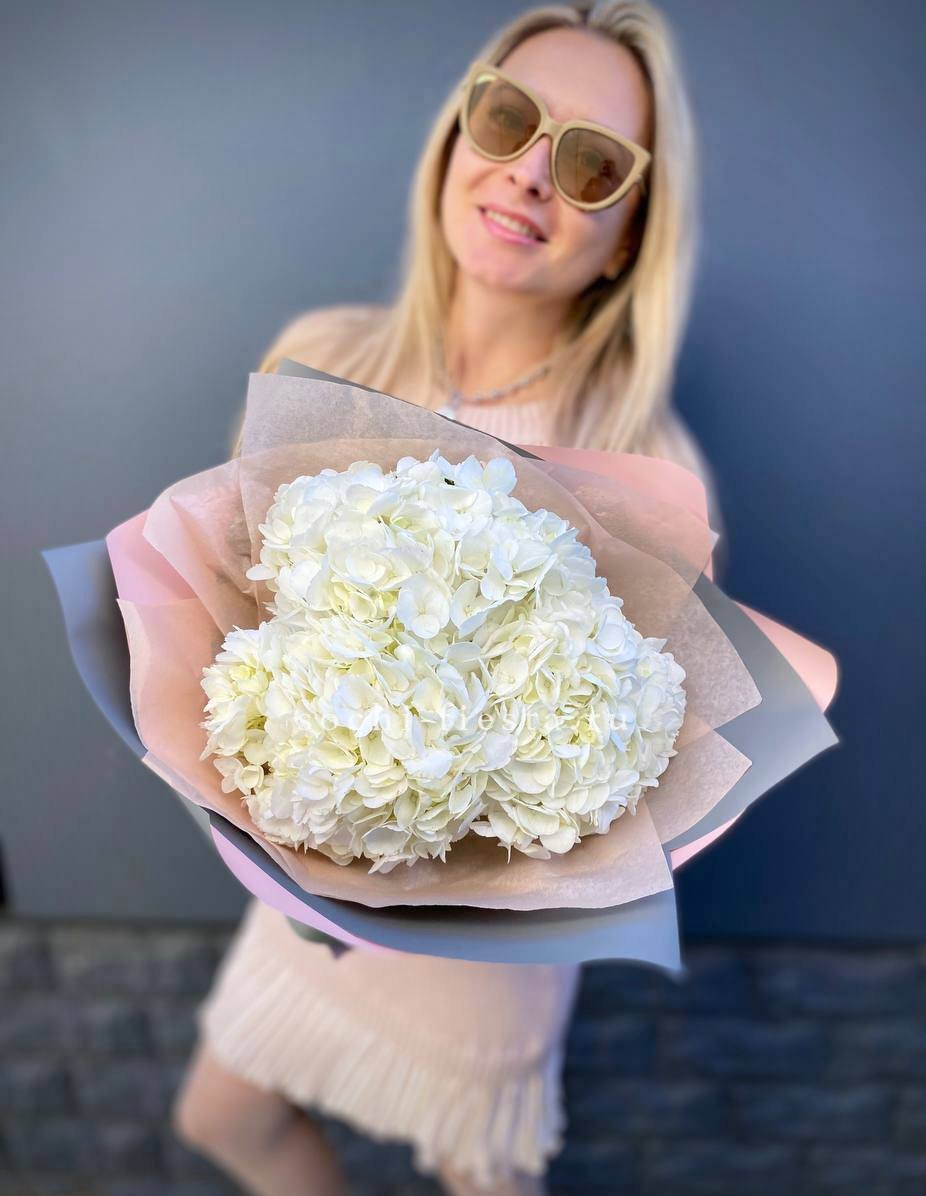 Для заказа товара "Букет из трёх белых гортензий" с доставкой в Химкие нажмите в корзину