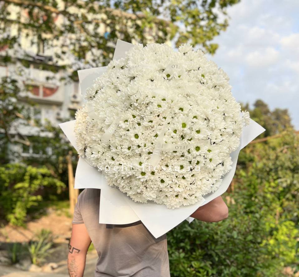 хризантема кустовая - 9 шт., лагурус, пленка,  лента.