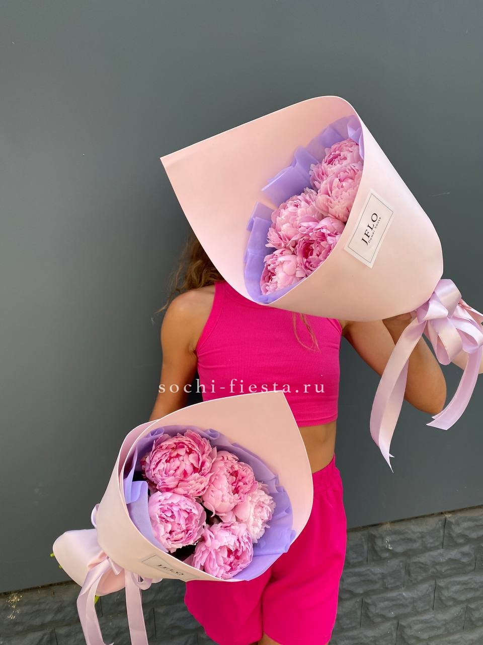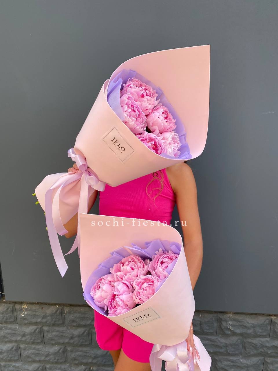 на фото представлены два букета, цена за один букет на выбор количество пионов В стандартном исполнении - 5 пионов.
