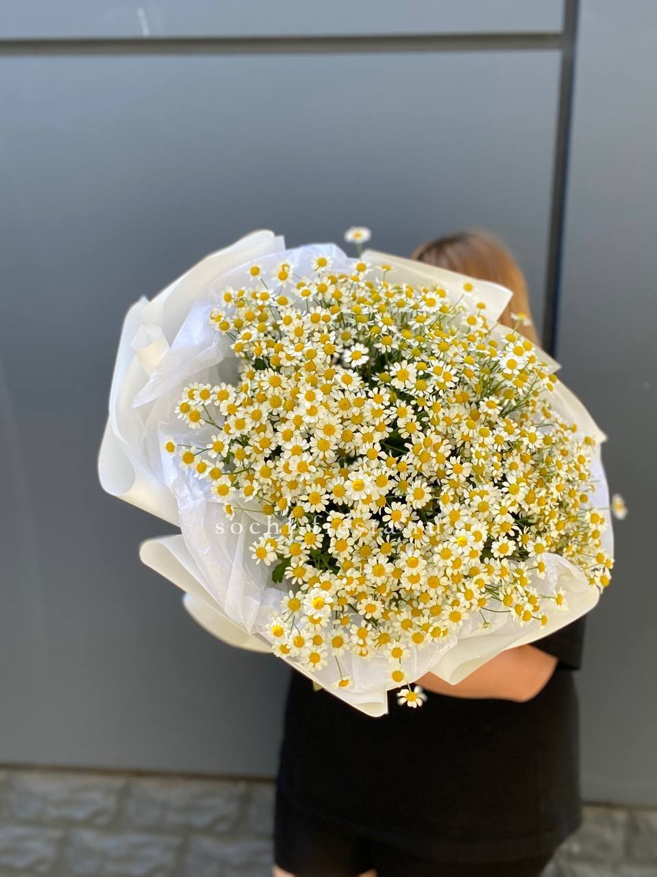 ромашки (танацетум камилла) - 15 веток, лента, упаковка.