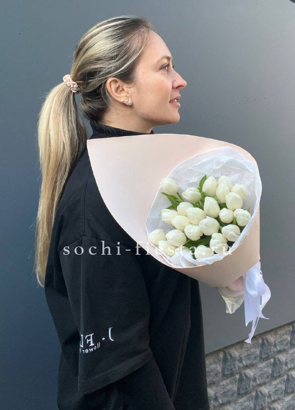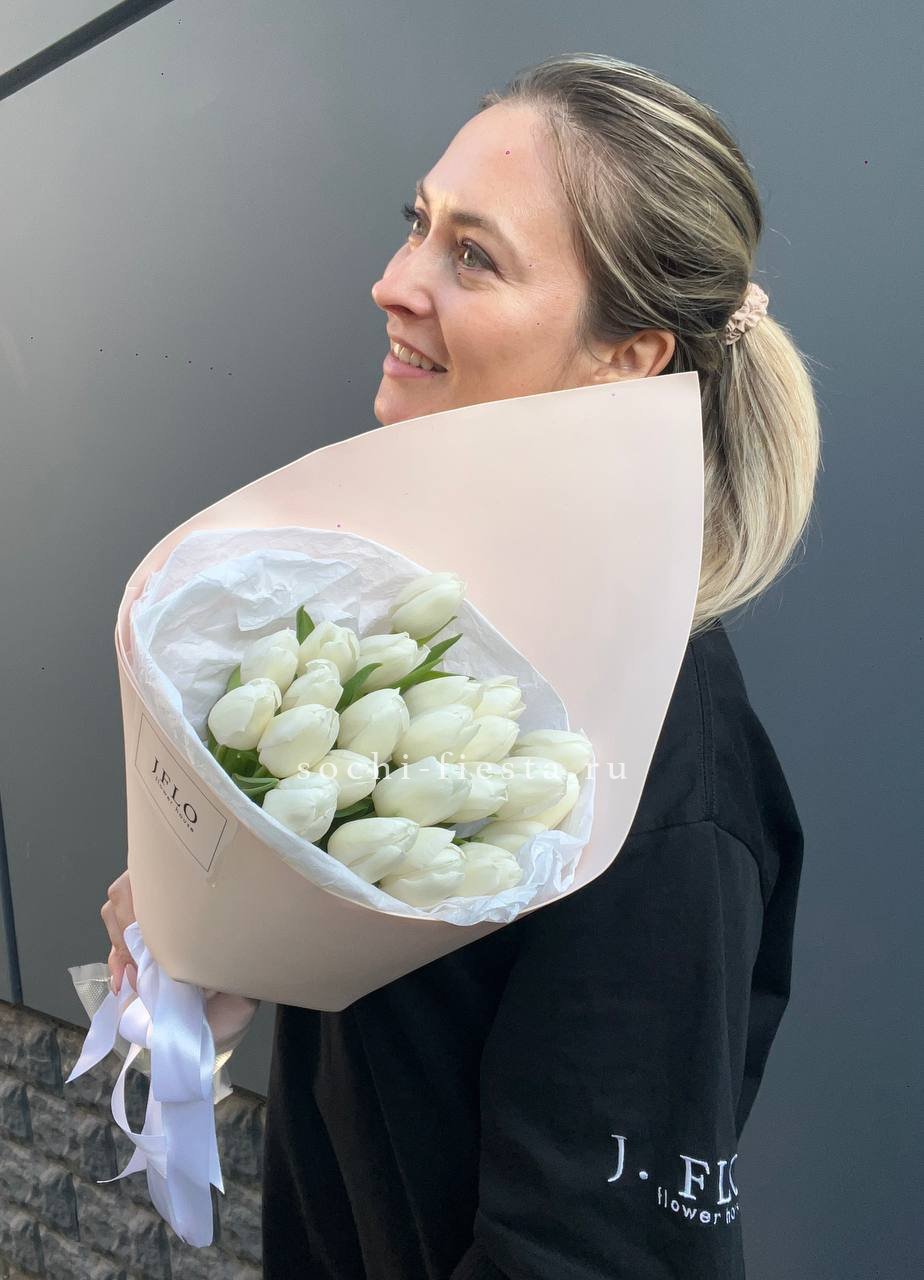 Девятнадцать тюльпанов с упругими закрытыми бутонами. Белые лепестки постепенно раскроются и покажут всю глубину цветка. Букет будет радовать свежестью несколько дней.