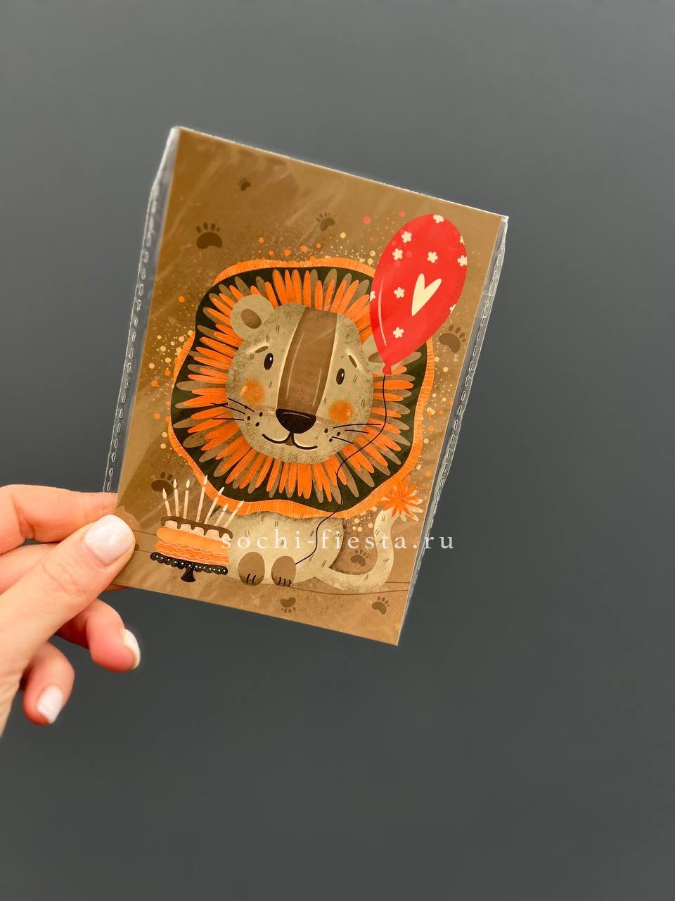 Для заказа товара "Открытка к букету "Лев с тортом” " с доставкой в Химкие нажмите в корзину