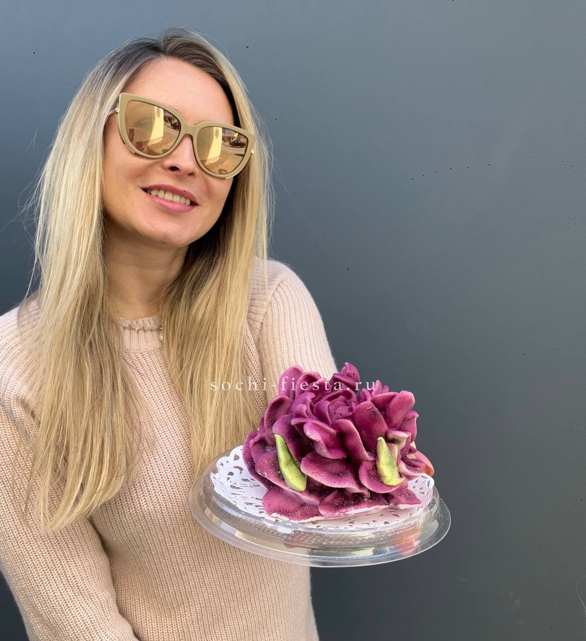 зефир в форме цветка (на выбор форма и цвет: пион, роза). Состав: сахар, патока, пектин, агар, яблочное пюре, яичный белок, натуральный краситель, лимонная кислота. Цена за 1шт. Данный товар можно заказать только с букетом, цветочной композицией, шарами или подарочной корзиной.