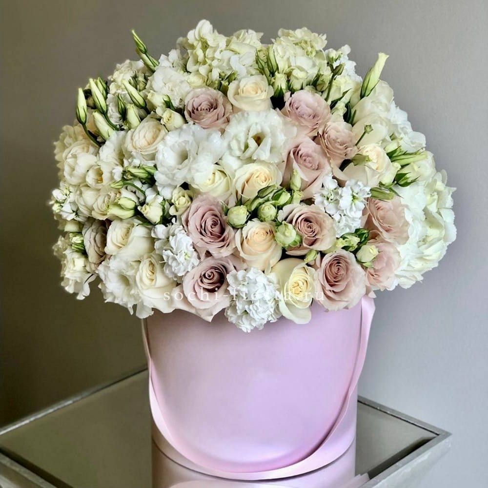 мисти баблс, гортензия, розовая роза, коробка размер 16D.