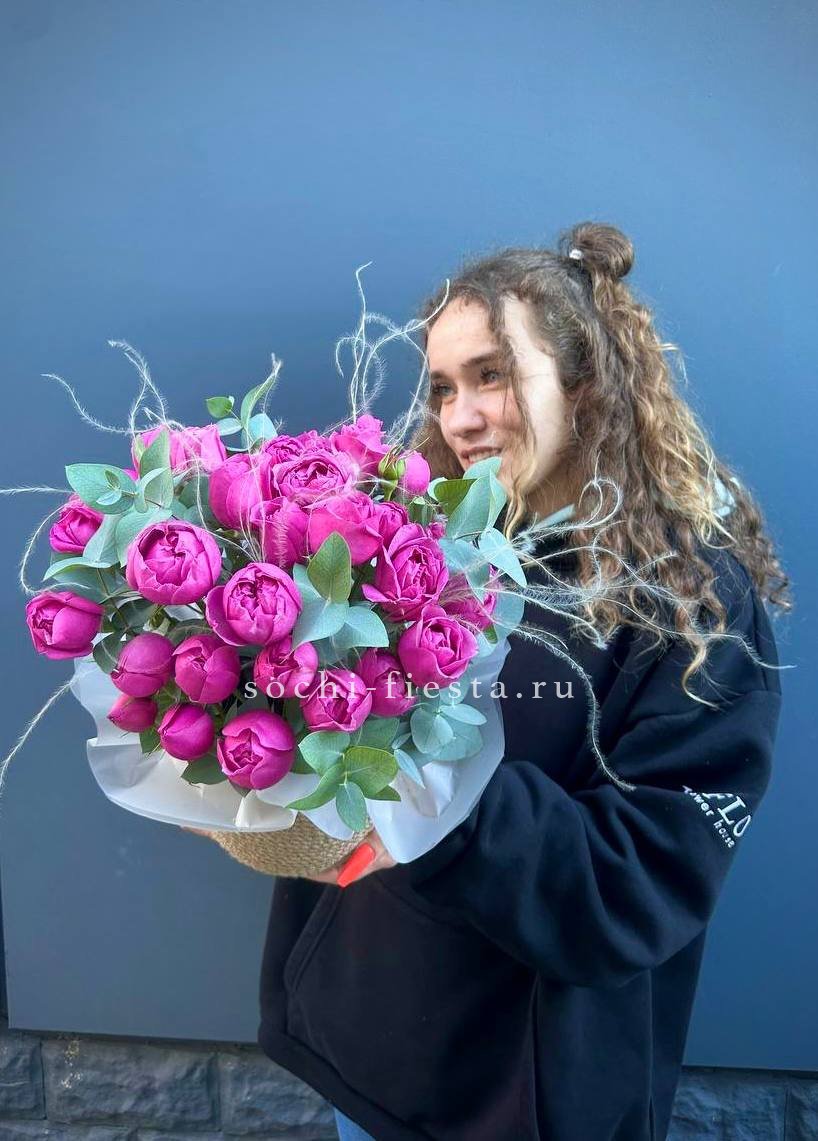 Для заказа товара "Пионовидные розы в джутовом кашпо " с доставкой в Химкие нажмите в корзину