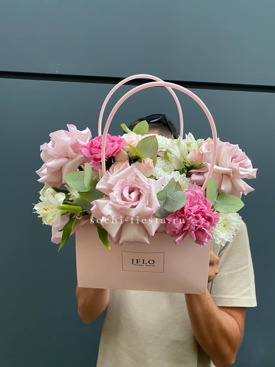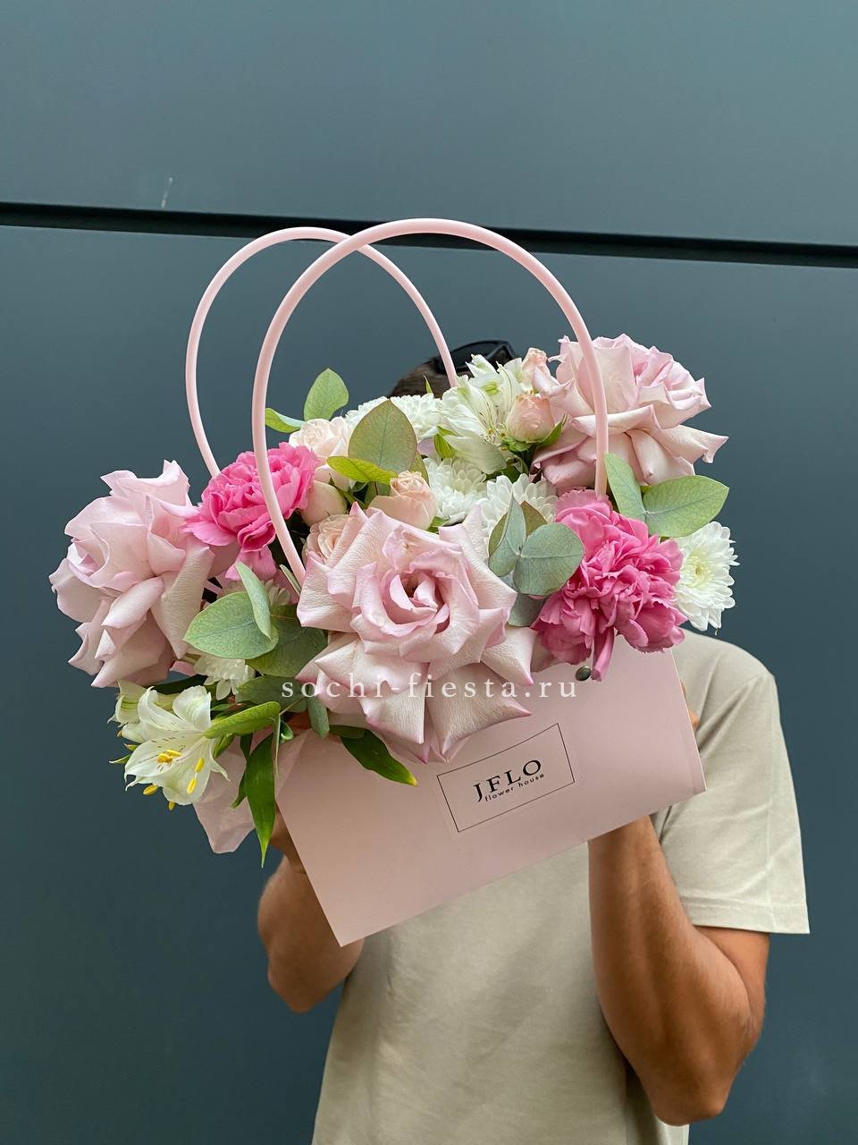 французские розы, лента, сумочка.