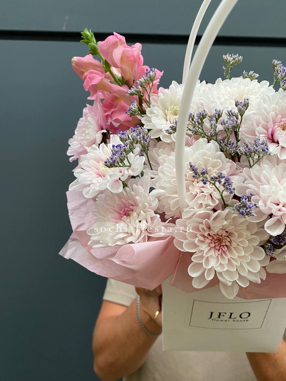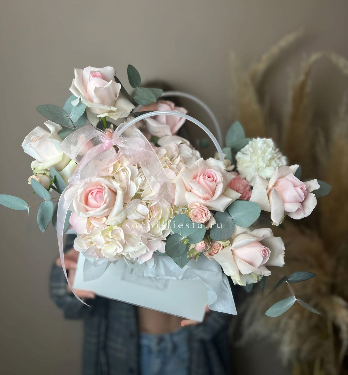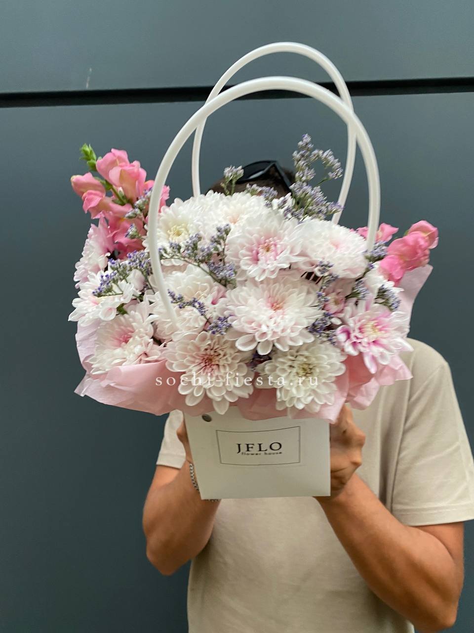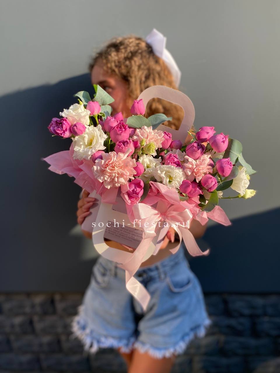 Для заказа товара "Сумочка с кустовой розой и диантусами" с доставкой в Химкие нажмите в корзину