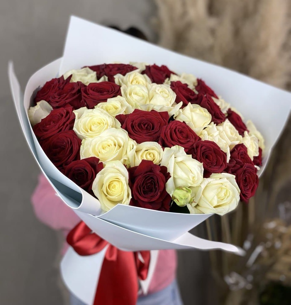Для заказа товара "51 красная и белая роза" с доставкой в Химкие нажмите в корзину