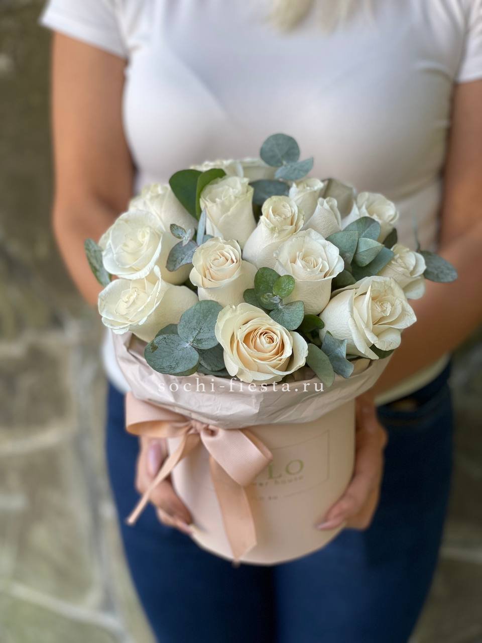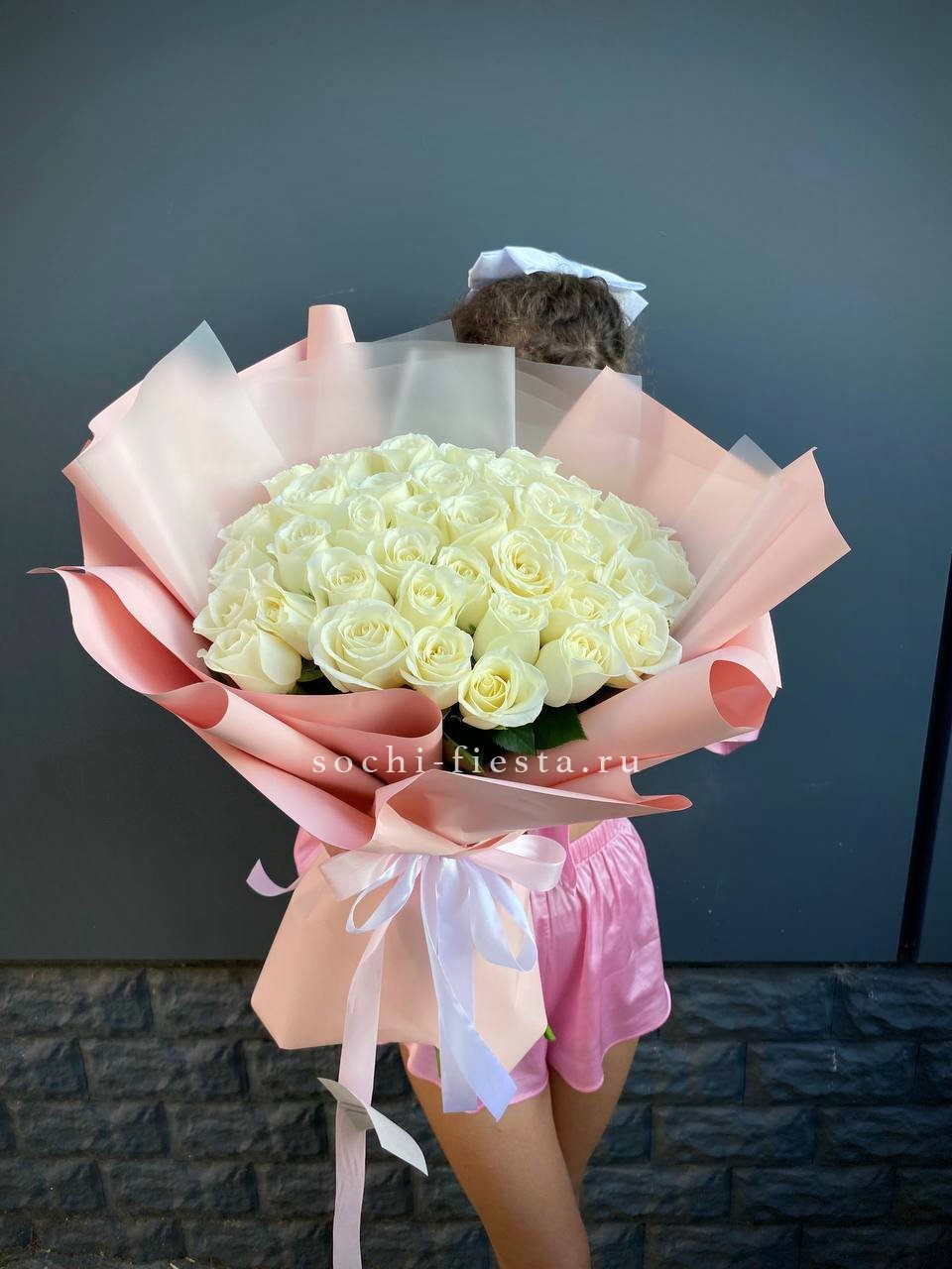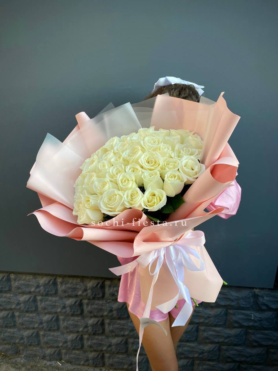 Классический букет из пятнадцати белых роз в упаковке из фоамирана держит форму и остается свежим долгое время. Компактная композиция удобна для транспортировки и размещения в любом интерьере.