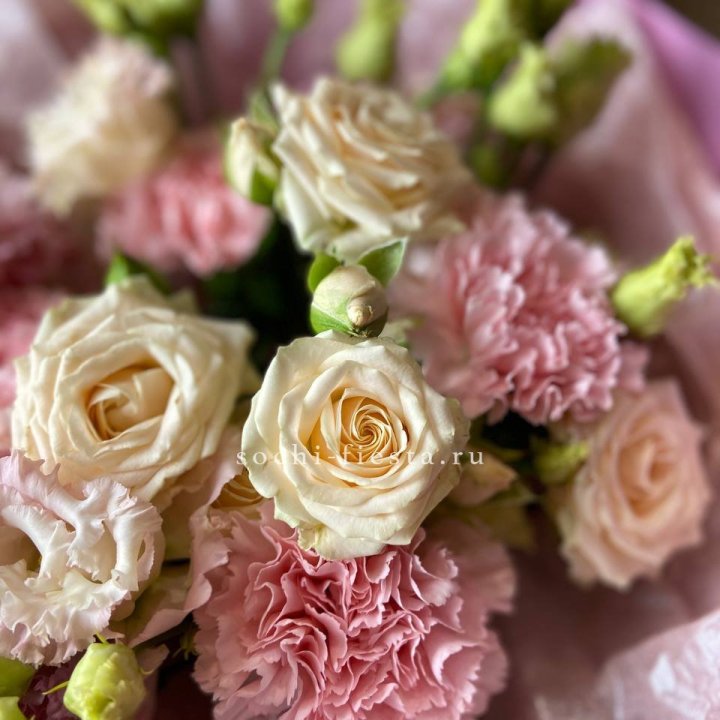 Состав сборных букетов в Химкие: розы (Freedom, Mondial), хризантема кустовая, альстромерия, эустома, фрезия. Дополнительно в сезон — тюльпаны, нарциссы, ранункулюсы, ирис. Поставки в Химкие раз в 3-5 дней из ближайшего регионального центра. Флорист планирует ассортимент под дату поставки и знает, что будет в наличии к нужному дню.