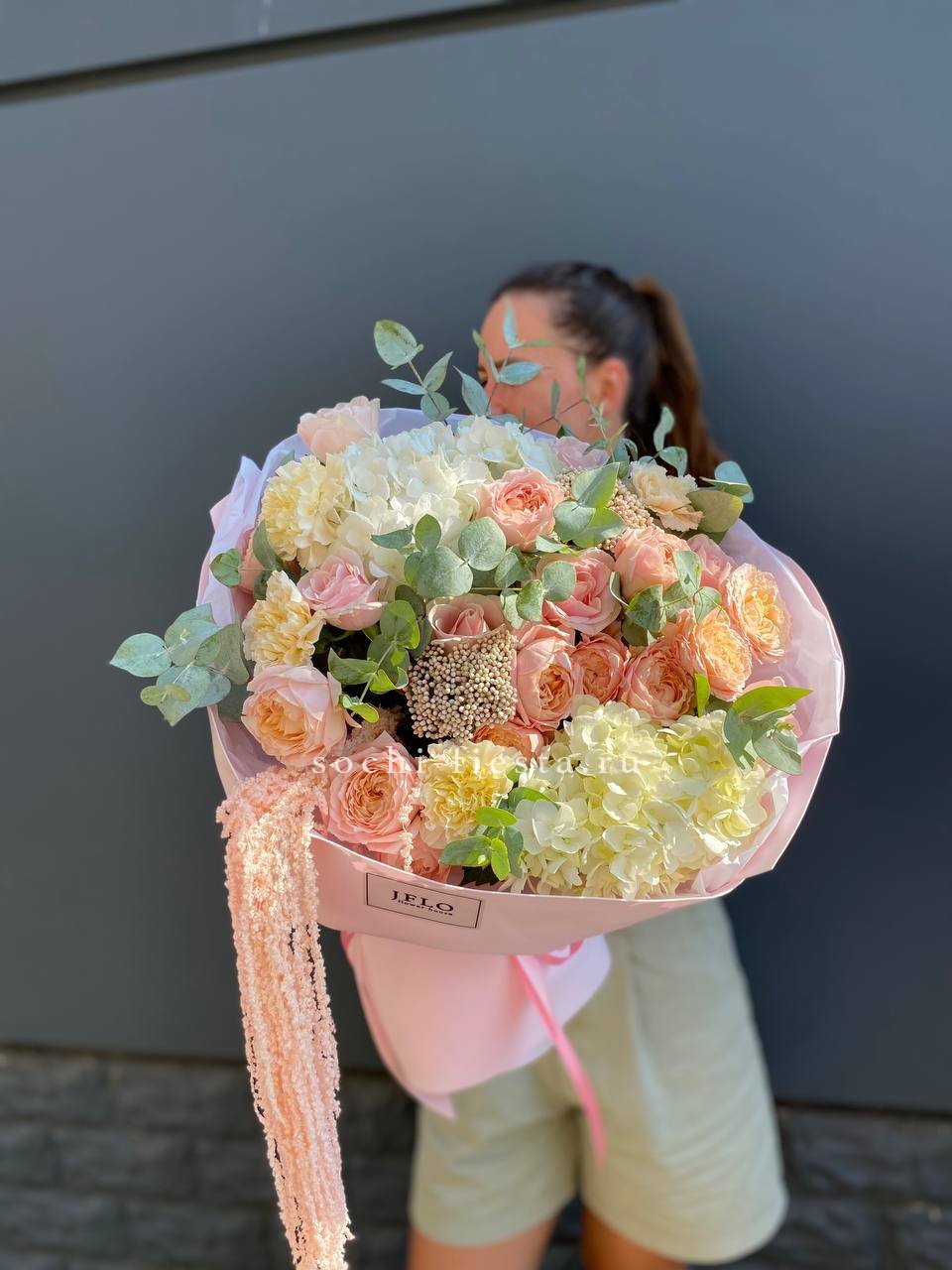 джульетта, озатамус, диантус, гортензия, розовая роза, амарант, оформление.