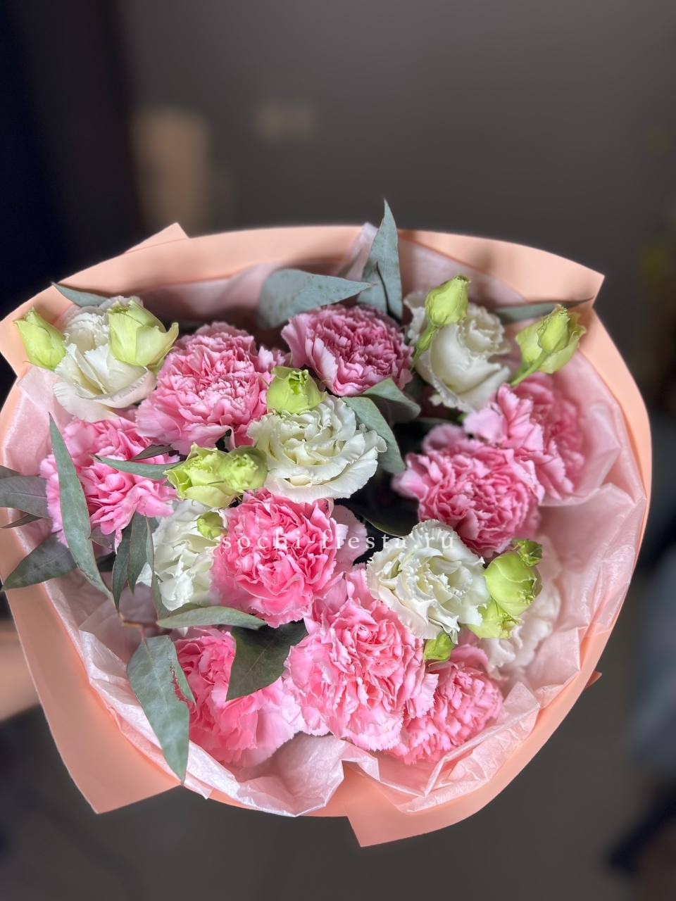 Для заказа товара "Букет гвоздик и эустом "Сири"" с доставкой в Химкие нажмите в корзину