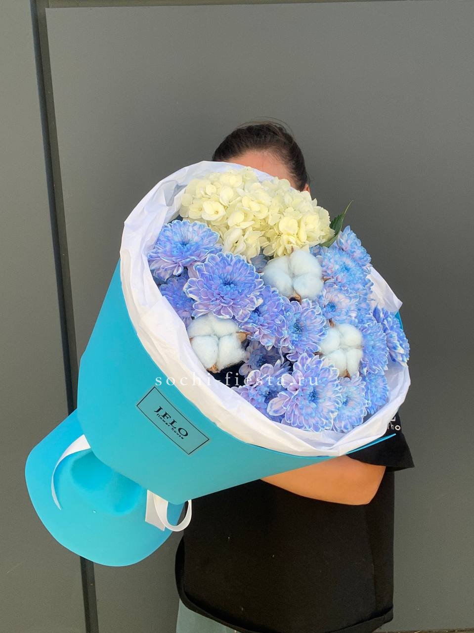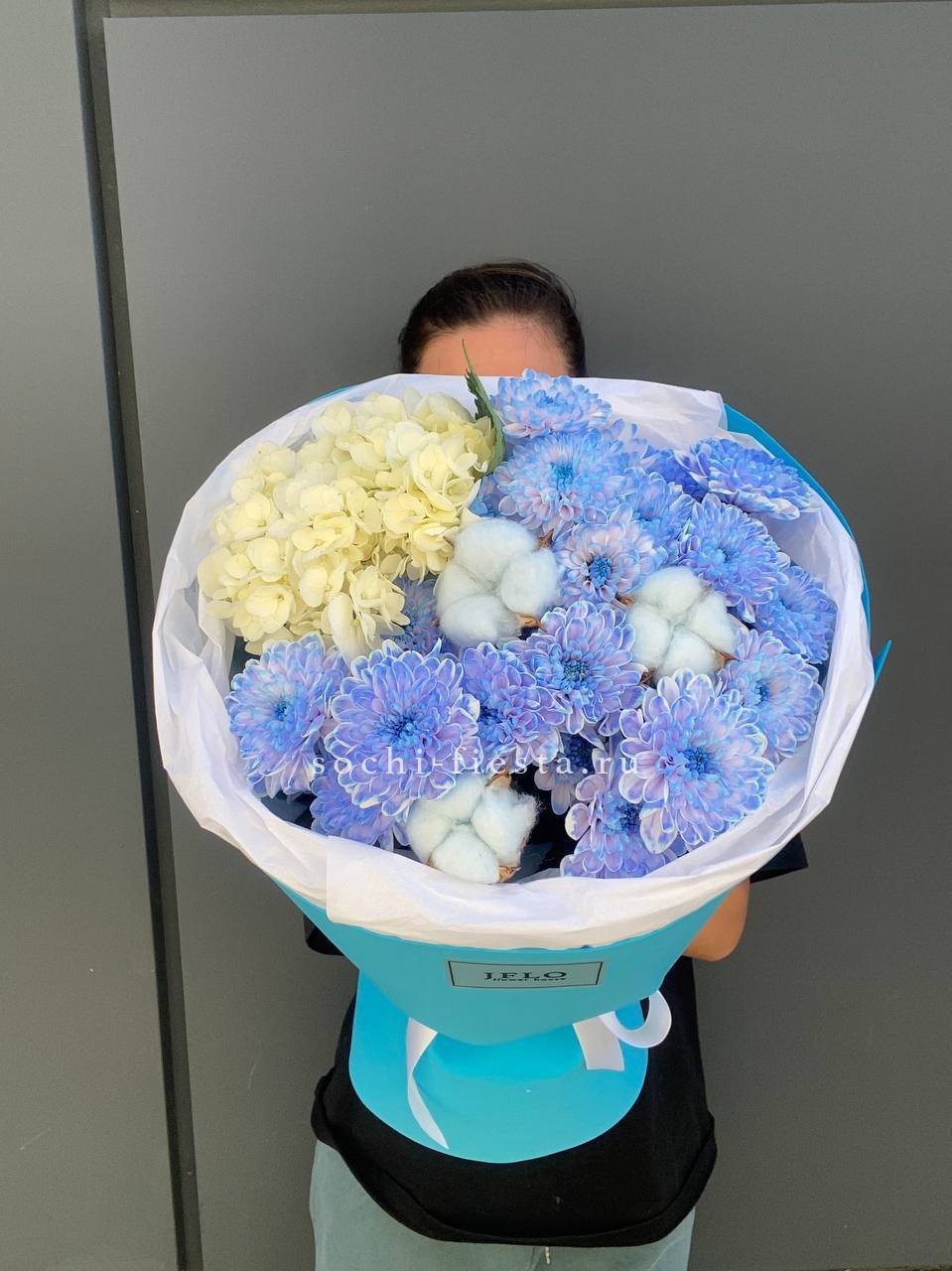 В центре внимания — фактуры и цвет! Современный, стильный букет, который сочетает бархатистые бутоны роз и мягкий хлопок. Это не просто цветы, а целая цветочная композиция для тех, кто ценит красоту в деталях. Отличный повод порадовать себя или близких!